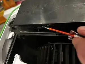 Чтобы снять крышку, используйте маленькую плоскую отвёртку, чтобы отпустить две защёлки с другой стороны корпуса.