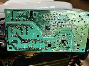 Я решил проверить другой конденсатор, верхнюю часть платы электроники и нижнюю сторону (потребовалось снять дополнительные винты), чтобы проверить наличие других повреждений (следов горения, ослабленных пайок и т. п.).