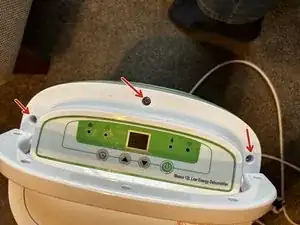 Удалите три винта, указанные стрелками выше / за панелью управления.