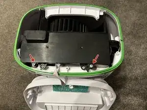 Удалите два винта, доступных при поднятии заслонки направления потока воздуха.