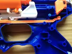 Убедитесь, что вы НЕ потеряли пружину, обведённую красным на изображении. Если вы её потеряете, ваше оружие придётся перезаряжать вручную.