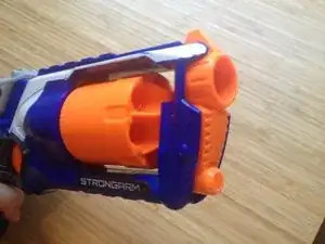 Снимите ствол, в котором размещаются снаряды Nerf.