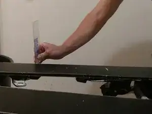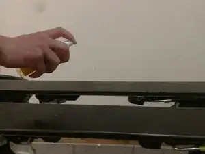 Распылите очиститель основы вдоль нижней поверхности лыжи.