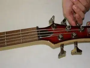 Внимание: не затягивайте струны чрезмерно. Это может привести к их обрыву и причинить травму. Струны слишком туго затянуты, если вам трудно вращать колок.