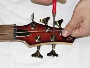 Если струна звучит выше на высоких нотах, ослабьте винт, удлиняя струну. Если струна звучит ниже на высоких нотах, затяните винт, укорачивая струну.