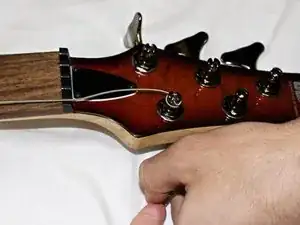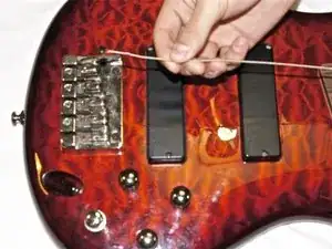 На натянутой струне измерьте один дюйм от верхнего медиатора (nut) и отрежьте струну кусачками.