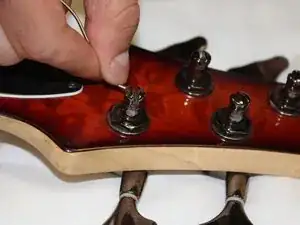 Наша струна G была слегка острой на высоких нотах, поэтому мы отвинтим винт, чтобы удлинить струну.