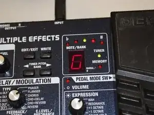 Перенастройте струну и снова проверьте высоту на 12-м и 24-м ладах. Обратите внимание, что теперь горит только зелёный индикатор, что указывает на то, что высота соответствует G.
