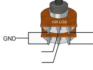 Вам понадобится простой стерео потенциометр 10K с 6 контактами
