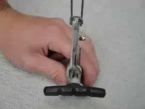Прикрутите рычаги калипера обратно, убедившись, что штифт на задней стороне рычага калипера совпадает с одним из отверстий в раме. С обеих сторон должен быть выбран одинаковый паз.