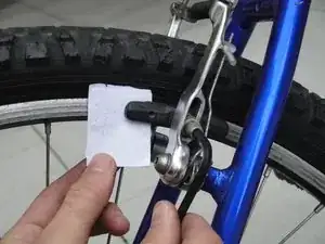 Поместите сложенный лист между тормозной колодкой и ободом в показанном положении.
