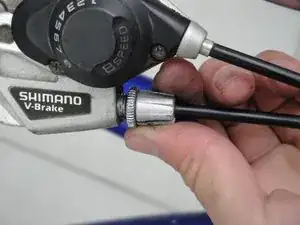 Отрегулируйте тормозной регулятор на руле так, чтобы при зажатии тормозов тормозная ручка останавливалась до соприкосновения с рулём. Это установит расстояние между колодками и ободом.