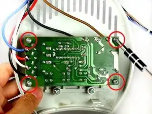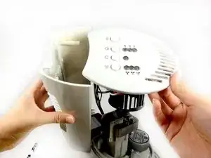Снимите верхнюю крышку, содержащую плату и провода, отводя её от внешнего корпуса вентилятора.
