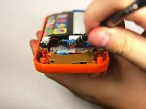 Снимите четыре винта 13.8 мм с задней части устройства с помощью отвертки Phillips #1.