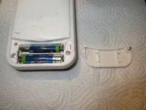 Извлеките две батарейки AAA, потянув за один конец батареи и подняв её вверх.