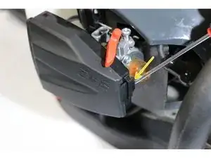 Используя отвертку, нажмите на зажим, чтобы открыть крышку фильтра.