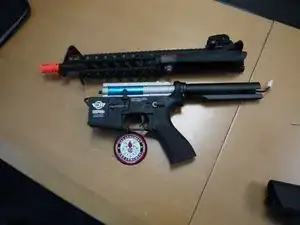 Самое большое отличие между пневматической винтовкой Combat Machine Carbine и Raider заключается в проводке. Carbine подключен к передней части и имеет аккумулятор внутри приклада, тогда как Raider подключен к задней части и имеет аккумулятор в прикладе.