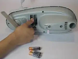 Потяните за ленту, чтобы извлечь 2 батарейки типа AA.