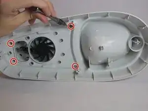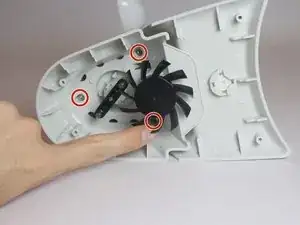 Снимите четыре винта диаметром 0.8 см внутри корпуса, расположенные рядом с вентилятором, используя биту J1.