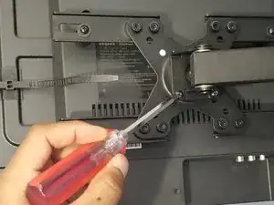 Снимите два болта M4x5 мм на задней части монтажной пластины телевизора, используя отвертку Phillips #00.