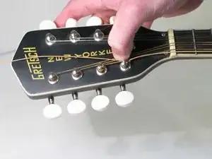 Аккуратно снимите верхний конец струны с колка в головке мандолины.