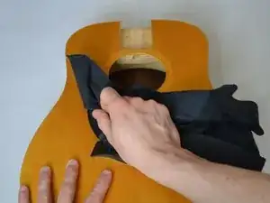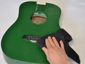Нанесите полироль на гитару с помощью полировальной тряпки.