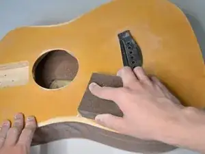 Отшлифуйте гитару шлифовальной губкой со средне‑крупным зерном.