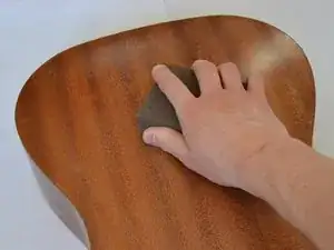Не нажимайте сильно при влажной шлифовке. Используйте лёгкое касание, чтобы не поцарапать гитару.