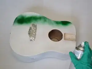 Нанесите два тонких равномерных цветных слоя краски на гитару.