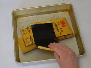 Замочите мелкозернистую наждачную бумагу в воде на 1 час.