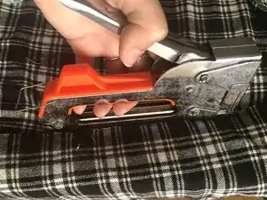 Прикрепите ткань к подушке с помощью степлера, чтобы она была достаточно надежно закреплена и не отвалилась.