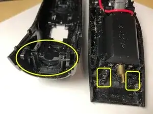 Удалите два винта PH00 длиной 11.0 мм из черного пластикового корпуса внизу устройства.