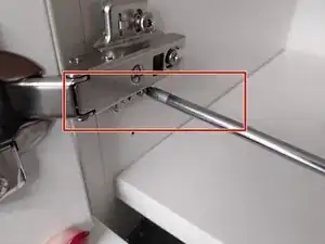 5. Как только верхний винт ослаблен на два оборота и петля выровнена, можно полностью затянуть винт — теперь он точно попадает в отверстие.