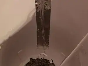 Убедитесь, что нижняя плита как можно дальше опущена вниз по шнура питания. Вам нужно будет провести шнур питания через отверстие внизу при удалении внутренних частей.