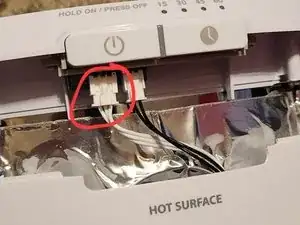 Этот этап может быть немного сложным. Вам нужно будет добраться до внутренней части обогревателя, чтобы отключить другой конец белого кабеля. Нижний разъем также имеет защелку, но она не видна.