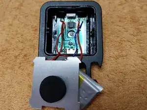 Вид очень простой внутренней компоновки; разделён на 3 части: аккумулятор с возможностью зарядки, печатная плата с мини-USB разъёмом и кнопкой, плата светодиода.