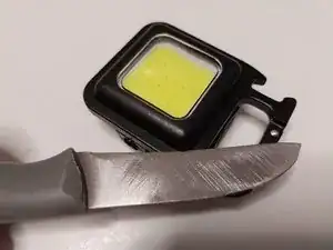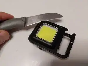 У фонарика нет винтов, поэтому для разборки требуется поддевание по бокам резаком или ножом.