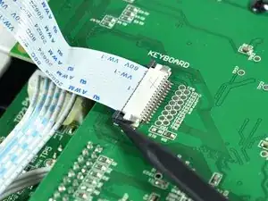 Обратите внимание на гибкий кабель, соединяющий клавиатуру с платой.
