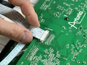 Схватите гибкий кабель пальцами и вытащите его из разъема.