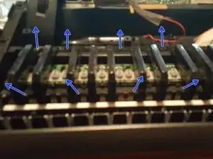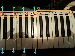 Чтобы снять белые клавиши, раскрутите винты, а затем поднимите заднюю часть набора, тянув клавиши к себе, вверх и наружу из клавиатуры. Они должны легко вытащиться.