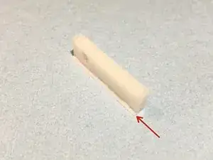 Установите напечатанную проставку между направляющей и деревом. Убедитесь, что небольшой выступ проставки расположен на плоском наружном крае направляющей (стрелка). Переустановите ящик и проверьте работу.