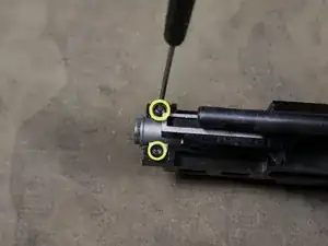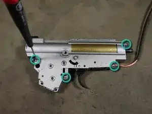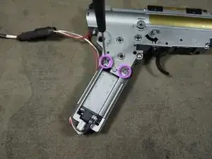Чтобы удалить хоп-ап и внутренний ствол, снимите показанные винты.