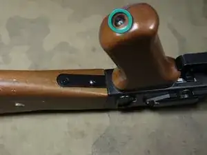 Удалите пластиковую деталь за спусковым крючком. Снять её можно ногтями или, в крайних случаях, плоской отверткой.