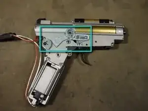 Теперь удалите цилиндр и все прикрепленные к нему детали (показаны на втором изображении), чтобы получить доступ к шестеренкам.