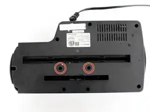 Удалите два винта Philips #1 длиной 50 мм с середины нижней стороны головки устройства.