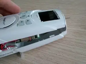 Теперь аккуратно снимите зеленую пластиковую панель вокруг baby-монитора (вокруг экрана), используйте лопатку, чтобы открыть её.