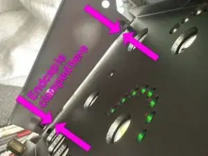 Вы можете удалить кнопки и защитные экраны светодиодов, отстегнув корпуса сзади платы, аккуратно, чтобы не сломать их. Я нашел, что использовать лопаточку удобно. Я бы не стал их снимать, если это не нужно, так как мембранные переключатели чувствительны к загрязнению