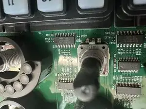 На плате не так уж много, кроме множества регистраторов сдвига серии 74 (74HC165D) и драйверов светодиодов MacroBlock MBI5020. Поворотные энкодеры, похоже, все шесть идентичны марке Dongguan LJV, хотя не уверен в конкретной модели.