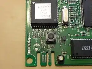 Этот переключатель припаян в двух небольших точках соединения на задней части материнской платы; перепаяйте оба соединения для замены этой детали.