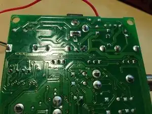 Чтобы заменить разъём батарейки 9V, просто перепаяйте соединения на обратной стороне платы в этих двух точках.